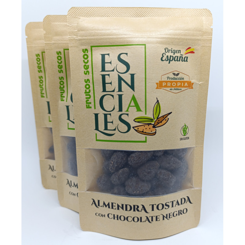 Almendras Tostadas Bañadas en Chocolate Negro. 120 g.